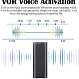 šVOR Voice Activation: Automatically initiate recording when sound levelsĀ reach 45dB. The VOR feature conserves battery by switching to energy-saving mode when sound levels drop.Ā